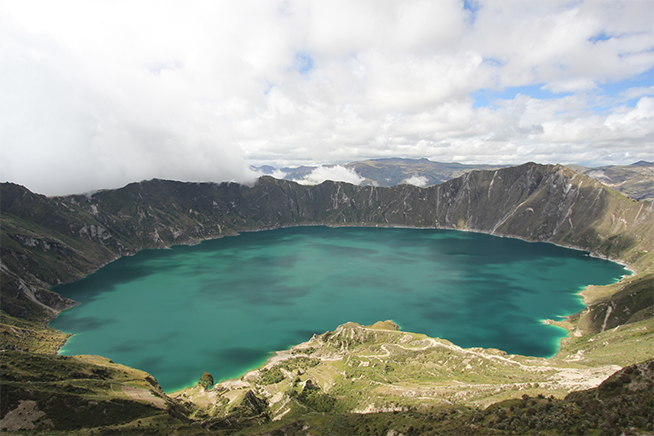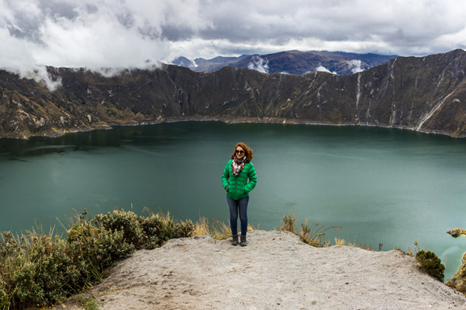 Larissa Basso diante de lago do Vulcão Quilotoa, no Equador LUIS FERNANDO KOLINGER