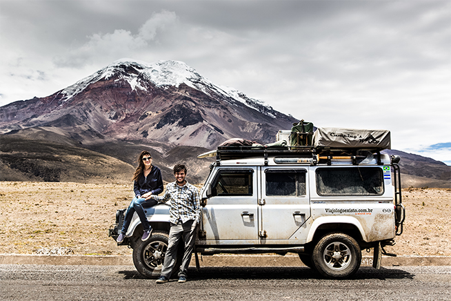 Assim como Leonardo e Rachel, o casal Luis Fernando Kolinger e Larissa Basso também nunca tinha ouvido falar dos três expedicionários brasileiros que mapearam a Estrada Pan-Americana. Em 19 de janeiro de 2016, uma semana depois de casarem, eles saíram de Porto Alegre e foram da Argentina até a Colômbia, passando por Chile, Bolívia, Peru e Equador. “Não seguimos para a América Central pelo fato de a estrada acabar na Colômbia e recomeçar no Panamá. O custo de fazer esse trajeto se tornou impagável para nós”, explica Luis Fernando.