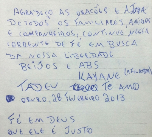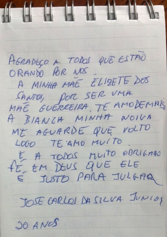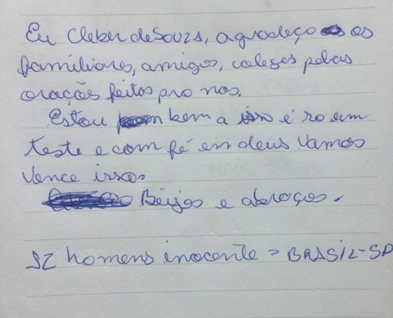 Os torcedores escreveram bilhetes para suas famílias. Cleber ressalta a inocência do grupo