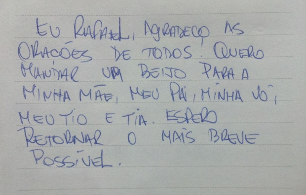 Rafael aproveitou para mandar beijos para os familiares