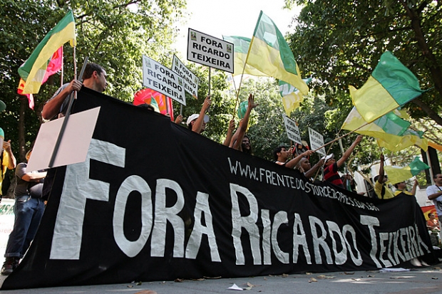 Manifestantes criticam Ricardo Teixeira antes de sorteio das Eliminatórias