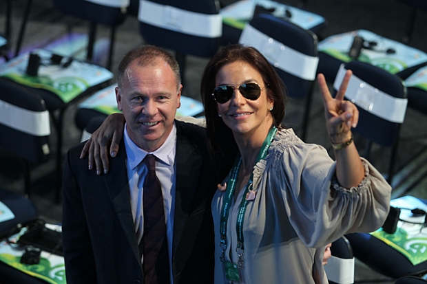 Mano Menezes, técnico da Seleção, posa para foto com a cantora Ivete Sangalo, que irá fazer show na cerimônia