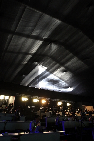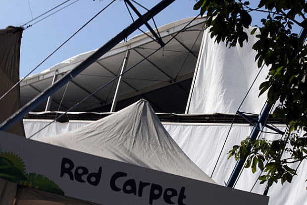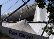 Estrago na lona visto do lado de fora da arena