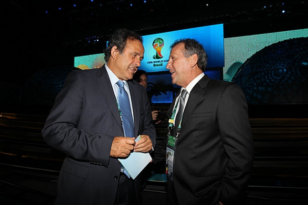 Rivais na Copa de 1986. Michel Platini e Zico se cumprimentam antes do início do sorteio