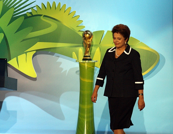 Presidente Dilma ao lado da taça Copa do Mundo Fifa