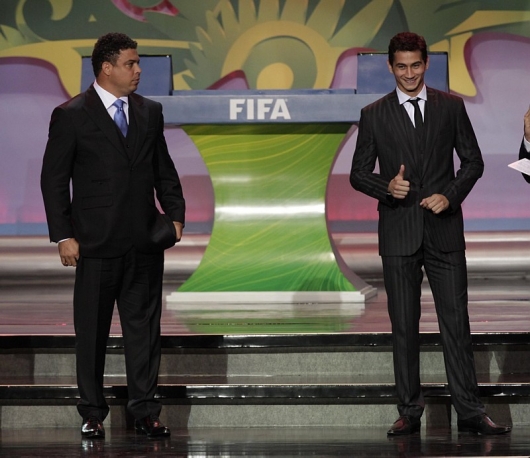 Ronaldo, o Fenômeno, e Paulo Henrique Ganso, atual camisa 10 da seleção, sortearam os grupos das Eliminatórias Européias