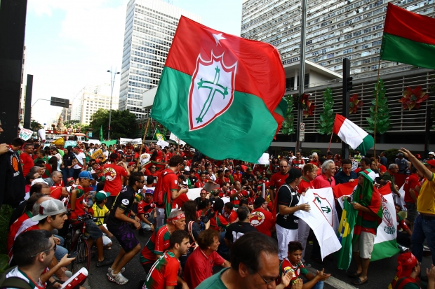 Centenas de torcedores da Portuguesa organizaram uma manifestação na Avenida Paulista para protestar contra a decisão do STJD
