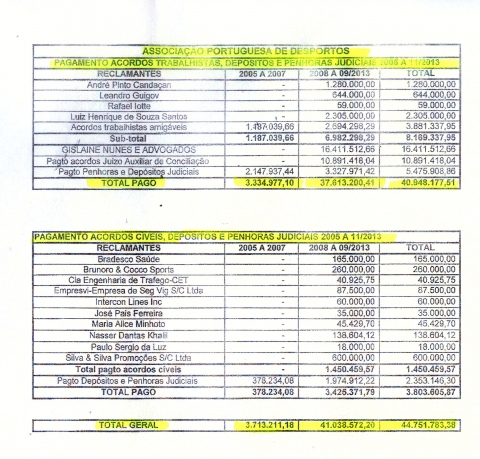 Documentos apresentados pelo ex-presidente Manuel Lupa mostram que os acordos trabalhistas representam grande parte do endividamente do clube