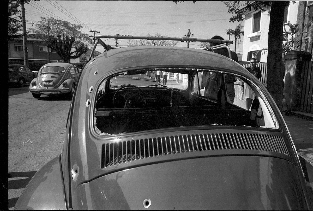 Os policiais José e Roberto se colocaram para fora da viatura e despejaram as balas de suas submetralhadoras na direção dos fugitivos. O Fusca ficou crivado de balas – os tiros que os militares disseram ter sido disparados contra a viatura não conseguiram nem mesmo perfurar a lataria da C-14. A fuga continuou pela Rua Argentina, quando uma nova rajada atingiu em cheio o lado esquerdo do Fusca. Gugu, que estava sentado atrás do banco do motorista, morreu com o impacto de um tiro. Chiquinho perdeu o controle do carro e bateu em um poste. Desceu do carro e, ao lado de Pancho, foi fuzilado pelo PMs. A perícia constatou em Chiquinho um ferimento de bala embaixo da axila, que só podia ter sido causado se ele estivesse com as mãos para cima. Pouco depois, chegou ao lugar a equipe 17 da Rota, que levou os rapazes mortos para o Hospital das Clínicas (HC). Pelo rádio, os policiais foram informados de que não havia queixa de roubo do Fusca. O que parecia uma ocorrência redonda começava a sair dos trilhos.