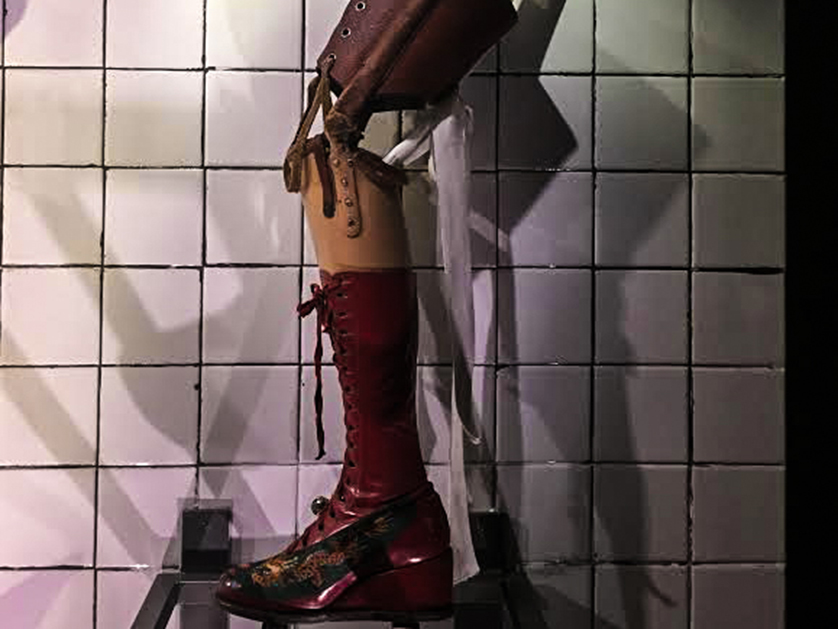 Caminhando ainda pela Casa Azul, vê-se uma cadeira de rodas à frente de um cavalete abrigado no grande ateliê da pintora, com amplas janelas para os belos jardins e estantes de livros (um deles, curiosamente, é um catálogo de obras do pintor brasileiro Cândido Portinari). Apesar das limitações físicas e das dores nas colunas, Frida trabalhava, mas o tema da dor fica realmente explícito com a exposição da prótese que ela usava no lugar da perna amputada e dos corpetes que a protegiam.