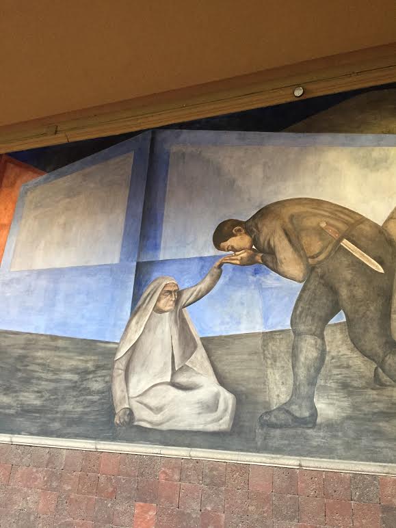 Já no Antigo Colégio de San Ildefonso, onde Rivera fez sua primeira obra mural, intitulada A Criação, o grande destaque são os afrescos de Orozco. Trata-se de obras de traços caricaturais, concebidas a partir de incisiva crítica à utopia que envolveu a revolução mexicana. Era, afinal, essa a visão do artista na época.