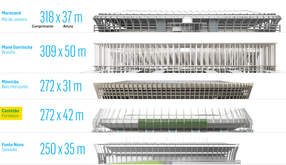 Compare as dimensões de algumas arenas