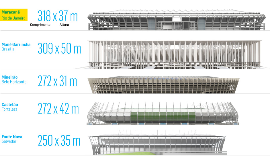 Compare as dimensões de algumas arenas
