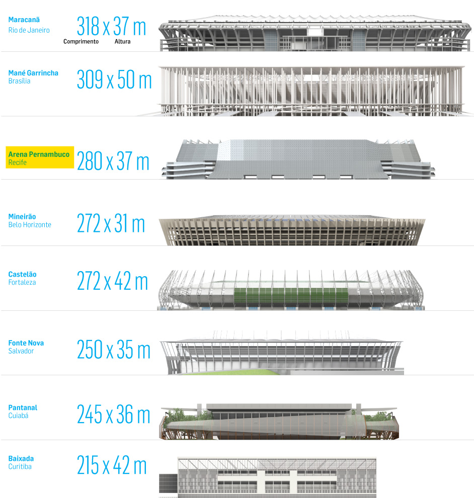 Compare as dimensões de algumas arenas