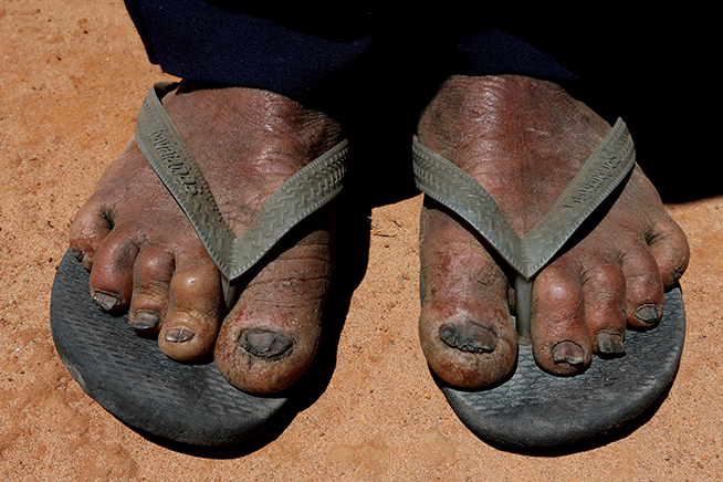 Joaquina afirma que o cerrado de seu tempo de parteira era de muita chuva. “Chovia muito mais.” Ela mostra o chão em volta da casa, duro, rachado. Mais adiante, uma plantação de mandioca sem vida. “Não tem mais como plantar nada, não. Por isso, o pessoal foi embora. Tudo era vereda cheia de água, muita. Precisava conhecer o tempo da jataí, dava uma abelha nesses buritis, nesses jatobás.”