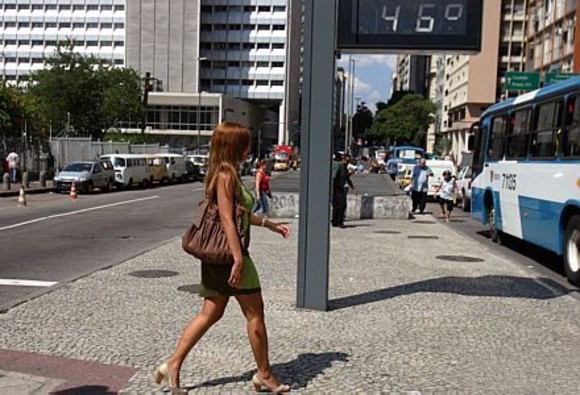 Na foto, termômetro marca 46°C no Rio de Janeiro