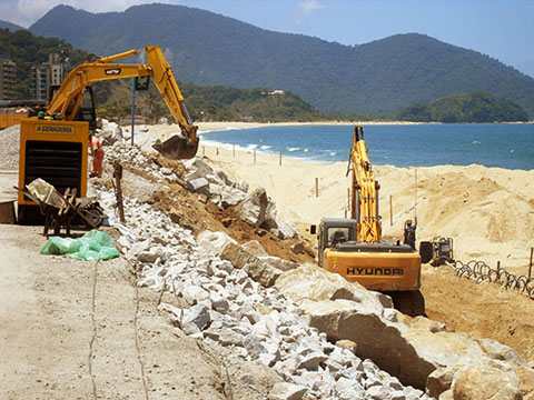 Na foto, obra em Caraguatatuba para conter o avanço do mar
