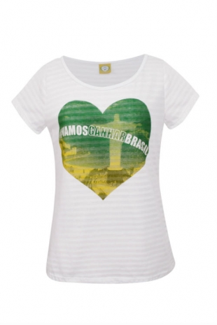 O Cristo Redentor e a bandeira brasileira em forma de coração inspiram na camiseta da Renner (www.lojasrenner.com.br), R$ 39,90
