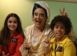 Leticia Pedro (Mila), Tamara Taxman (Dona Leocadia) e Cauê Campos (Capim) nas gravações da série