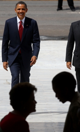 O Presidente dos Estados Unidos, Barack Obama, durante sua chegada ao Palácio do Planalto, neste sábado, 19