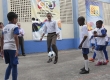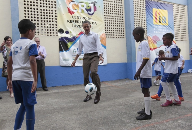 Presidente Barack Obama joga bola com garatos da Cidade de Deus, comunidade da zona oeste do Rio, neste domingo, 20