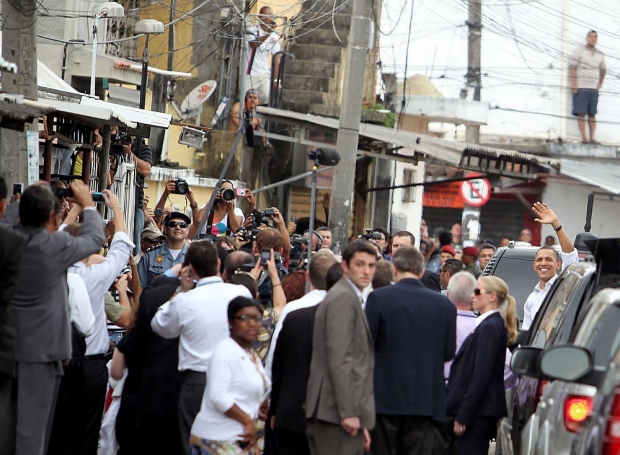 Presidente Barack Obama chega à Cidade de Deus, comunidade da zona oeste do Rio, neste domingo, 20