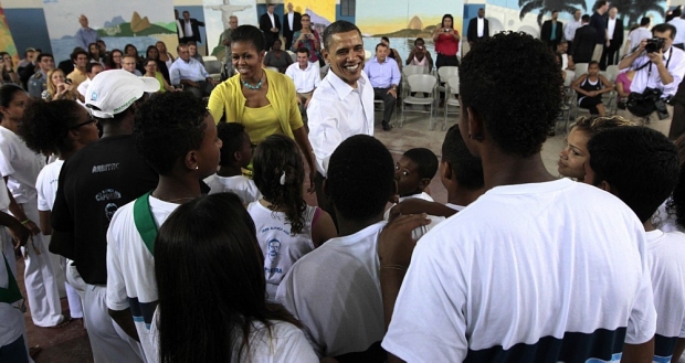Presidente Barack Obama e a primeira-dama, Michelle Obama, durante visita à Cidade de Deus, comunidade da zona oeste do Rio, neste domingo, 20