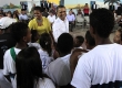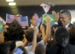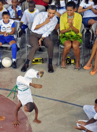 Presidente Barack Obama, acompanhado da primeira-dama, vê apresentação de capoeira na Cidade de Deus, neste domingo, 20