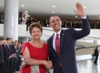 A presidente Dilma Rousseff recebe o presidente Barack Obama, na rampa do Palacio do Planalto, neste sábado, 19