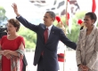 Presidente Dilma Roussef se despede do presidente Barack Obama e sua família no Palácio da Alvorada, neste sábado, 19