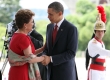 A presidente Dilma Rousseff recebe o presidente Obama no Palacio do Planalto, neste sábado, 19
