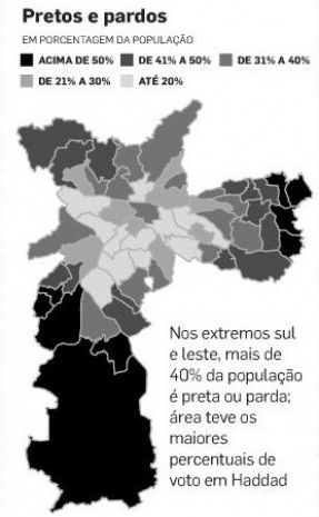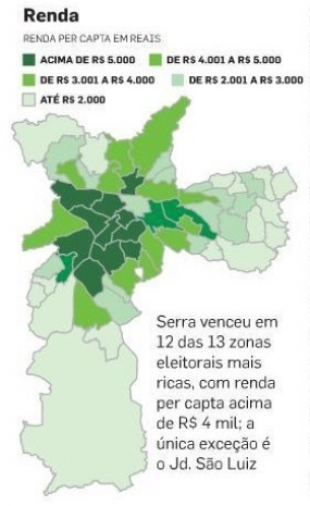 Áreas mais ricas, mais brancas e mais velhas preferiram Serra; Haddad levou as demais zonas, que são a maioria da cidade