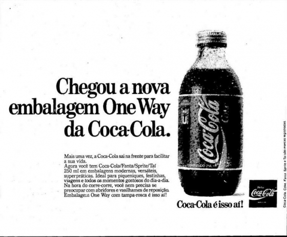 Lançamento das novas garrafas de 1 litro de Coca-Cola e Fanta, em 1970.