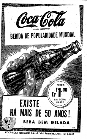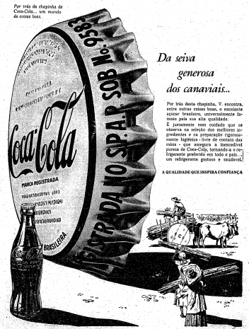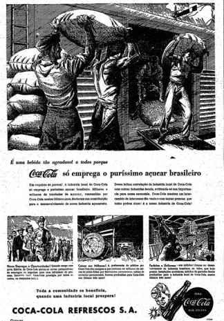 Anúncio de 9 de março de 1950 destaca o uso do açúcar brasileiro na bebida.
