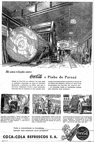 Empresa destaca as 'grandes encomendas' que fazia à indústria madeireira do Paraná, responsável pela produção das caixas do refrigerante. O anúncio é de maio de 1950.