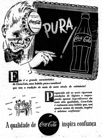 Anúncio de 1952 descreve a Coca-Cola como 'bebida pura e saudável'.