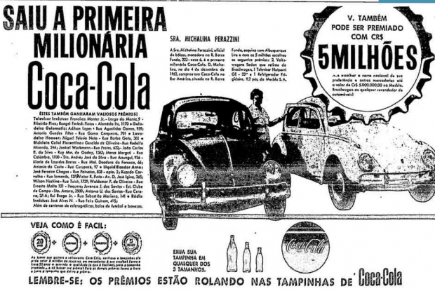 Milionária Coca-Cola: Michalina Perazzini ganhou 5 milhões de cruzeiros ao encontrar uma tampinha premiada em 1963.