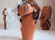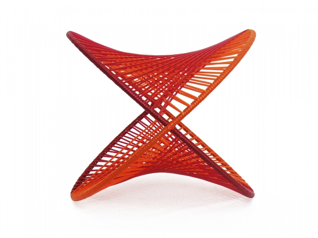 Poltrona Balanço, com remendas feitas com manta de resina, da coleção