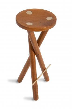 Banqueta El Dourado, de madeira maciça e aplicação de latão no assento