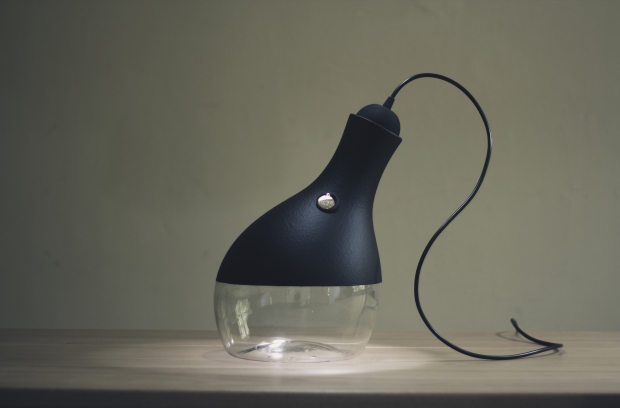 Luminária Guarda Luz, feita com garrafão de vidro reciclado