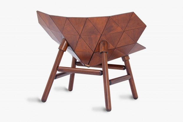 Poltrona Exo, de madeira e couro