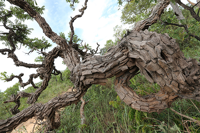 Joaquina afirma que o cerrado de seu tempo de parteira era de muita chuva. “Chovia muito mais.” Ela mostra o chão em volta da casa, duro, rachado. Mais adiante, uma plantação de mandioca sem vida. “Não tem mais como plantar nada, não. Por isso, o pessoal foi embora. Tudo era vereda cheia de água, muita. Precisava conhecer o tempo da jataí, dava uma abelha nesses buritis, nesses jatobás.”
