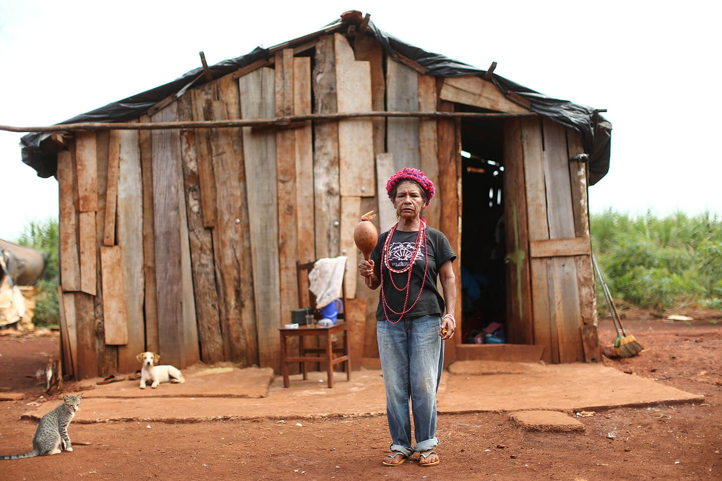 O acampamento Apyka’i expõe o cenário de abandono e degradação que se espalha entre os índios guarani-caiová que vivem no Mato Grosso do Sul. Desde 1999, quando foram expulsos da terra, esse grupo de índios perambula pela região, sobrevivendo como pode. Seis pessoas da comunidade, entre elas duas crianças, morreram atropeladas. Em fevereiro de 2014, Delci Lopes, de 17 anos, estava ao lado do marido, quando um caminhão carregado com bagaço de cana atingiu a moça na margem da BR-463 e arrastou seu corpo por alguns metros. Uma anciã da aldeia, diz Damiana Cavanha, morreu após ser alvo do veneno borrifado na lavoura. “Aquilo caiu em cima dela. Ela adoeceu e morreu poucos dias depois.”