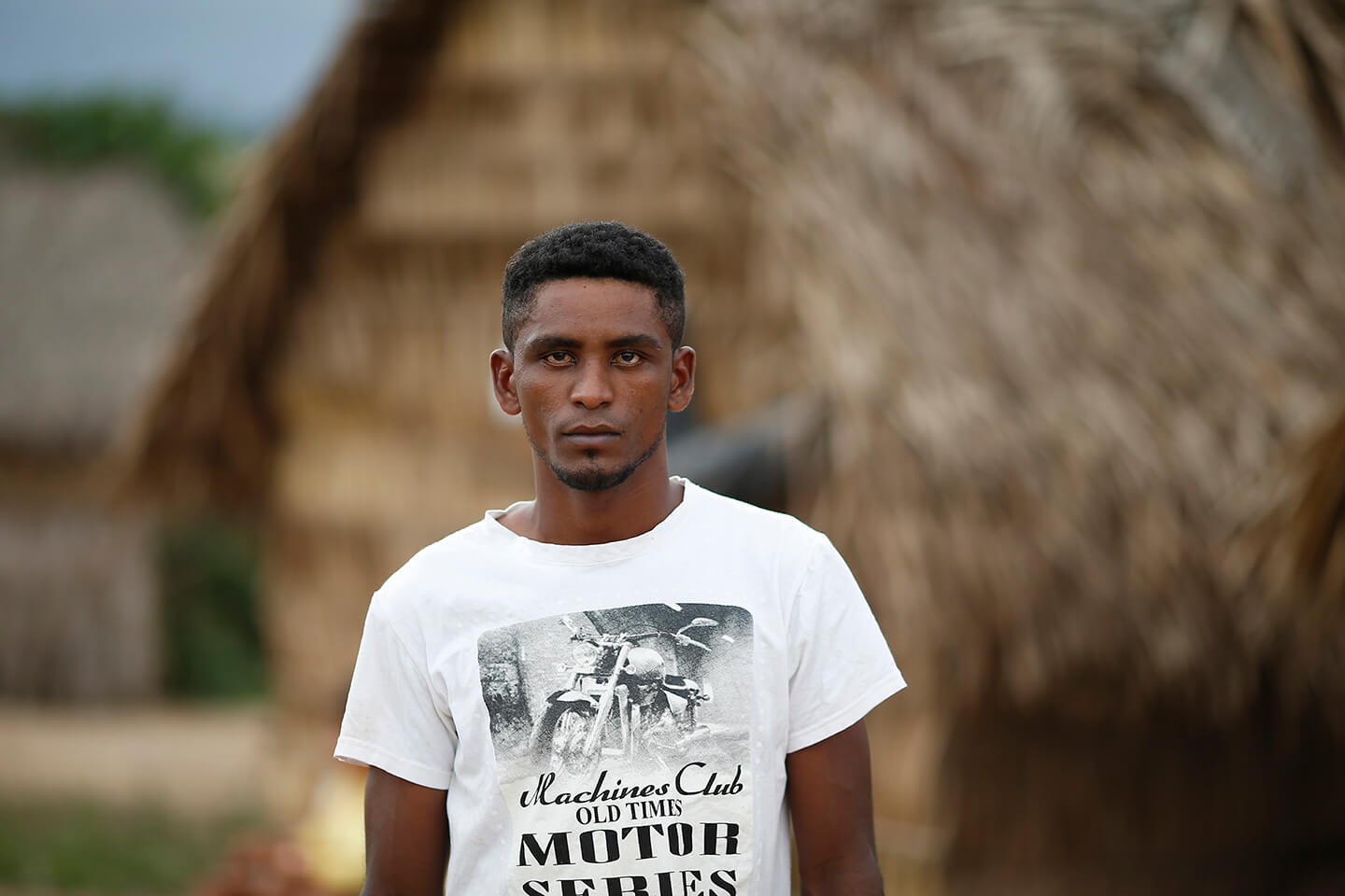 Em março de 2015, Francinaldo Souza da Costa, de 25 anos, pescava com outros três sem-terra numa grota, na divisa com a fazenda. Ele conta que seis homens armados da empresa Atalaia Segurança e Vigilância chegaram em um Fiat Uno e uma caminhonete. “Eles desceram dos carros. Mandaram fogo.” Pelo relato dele, um dos agentes atirou no chão próximo de onde estava o grupo e uma das balas bateu numa pedra e acertou a lente esquerda dos óculos que ele usava. A lente foi para trás e atingiu sua vista. Ele perdeu a visão do olho esquerdo. O episódio ficou registrado nos celulares dos sem-terra. Francinaldo está há dois anos no acampamento. Estudou até a oitava série do primeiro grau. Aos 5 anos, perdeu o pai, Compertino da Costa, goiano que chegou ao Pará nos anos 1970, morto a mando de um fazendeiro de Quatro Bocas, município de Itupiranga. A mãe, Emília Coelho de Souza, criou cinco filhos em assentamentos.