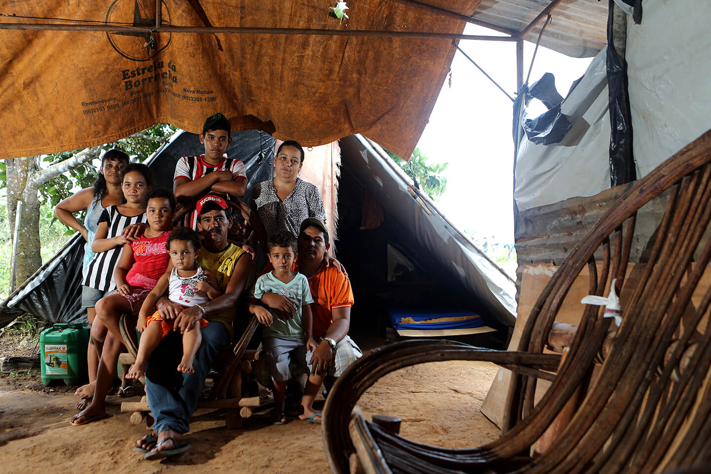 A história de Batista muda apenas de geografia. Os pais agricultores, Antonio e Imaculada, saíram de Governador Valadares, Minas Gerais, nos anos 1970, e se instalaram em Pontes e Lacerda, no sudoeste de Mato Grosso. Ali, num sítio de 19 alqueires, nasceu a maioria dos filhos do casal. Entre eles, Batista. Mais tarde, a família comprou uma área maior em Guarantã, de 32 alqueires, para viver e trabalhar. “O trem vai crescendo e a gente tem de sair”, resume o sem-terra. Ele sobrevive de retirar raízes das lavouras de soja e fazer cercas. Recebe diária de R$ 80.